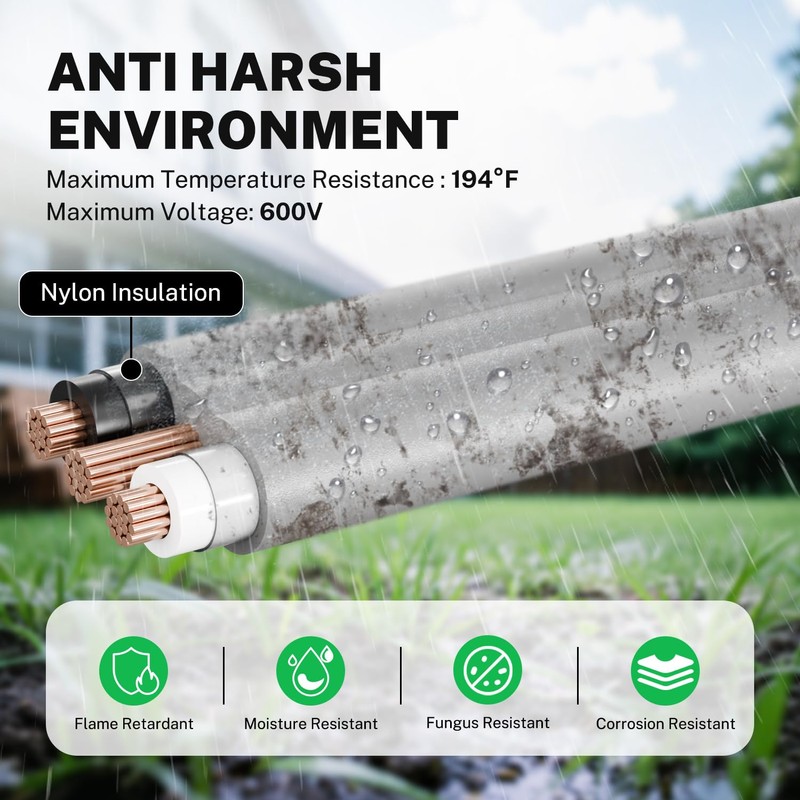 • Easy Wring: Stranded copper is flexible. Direct burial rated allows direct underground installation without conduit for simplified setup