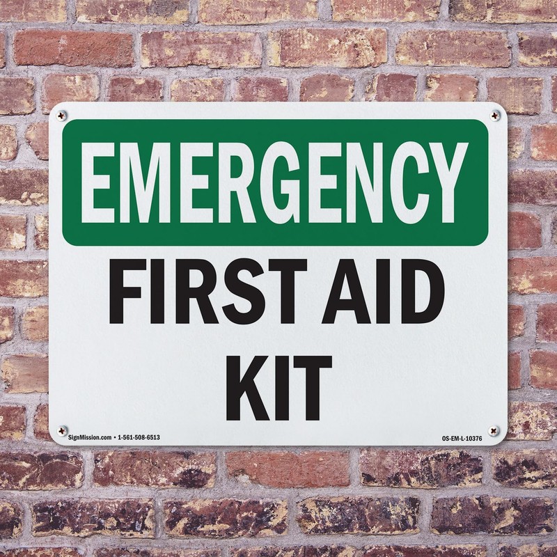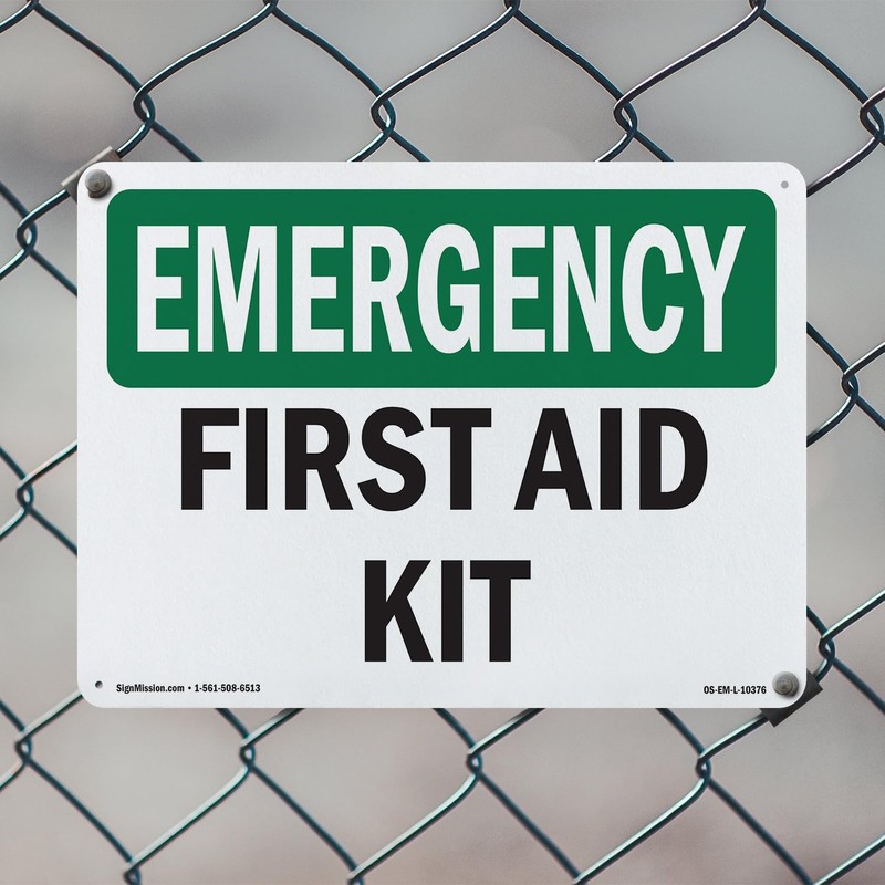 First Aid Kit OSHA Emergency Aluminum Sign 18 Inch x 12 Inch - 5 Pack