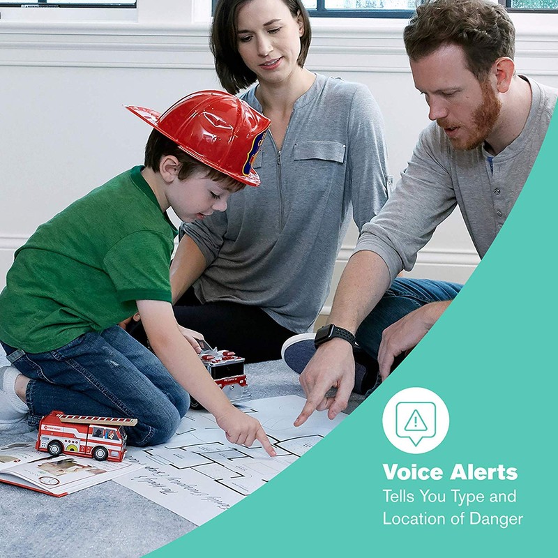 - Voice and location alert feature ensures residents are aware of the smoke or CO danger and provides the room location of where it was detected.