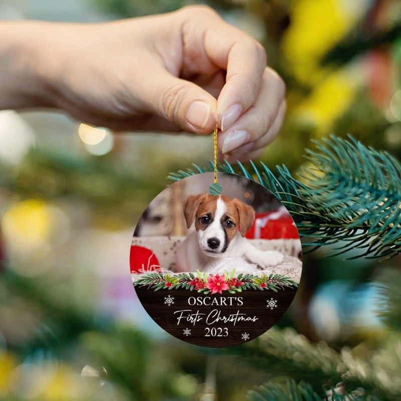 First Christmas Ornament, Custom New Dog Keepsake Present, Dog's 1st Xmas Ornaments 2024 Gift for Dog Owner, Personalized Photo Pet Gift, Customized New Pet Owner Keepsake with Name & Year of Pet