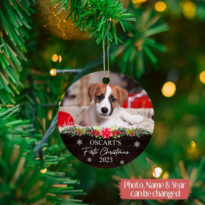 First Christmas Ornament, Custom New Dog Keepsake Present, Dog's 1st Xmas Ornaments 2024 Gift For Dog Owner, Personalized Photo Pet Gift, Customized New Pet Owner Keepsake With Name & Year of Pet