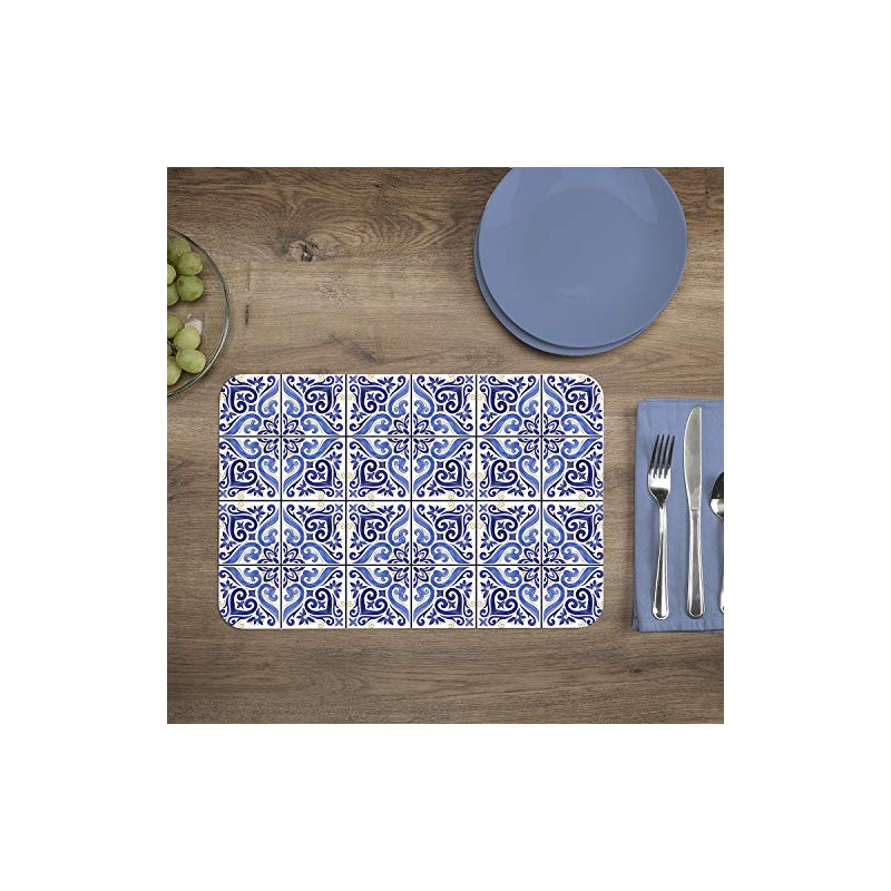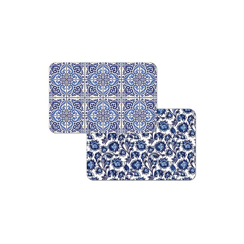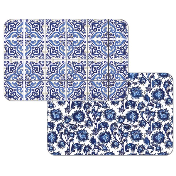 First Dawn Wipe-Clean Reversible Decofoam Placemats, Shades of Blue, Set of 2, Made in The USA
