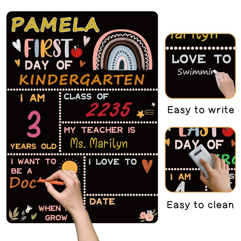 - Saves Your Money: Double-sided design school chalkboard can save you money. The first day and last day of school chalkboard has a double-sided design, one side is first day of school,the other is last day of school.