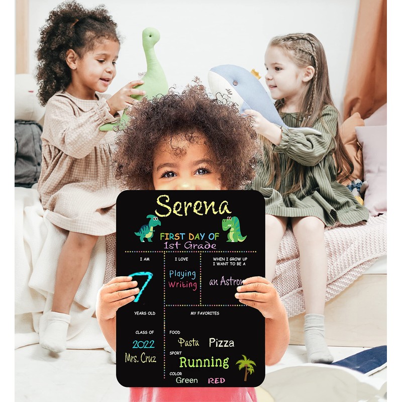 • [First Day of School Board]:First day of school chalkboard signs are perfect for commemorating the first and last days of preschool, kindergarten, and grades 1-12, as well as other activities.