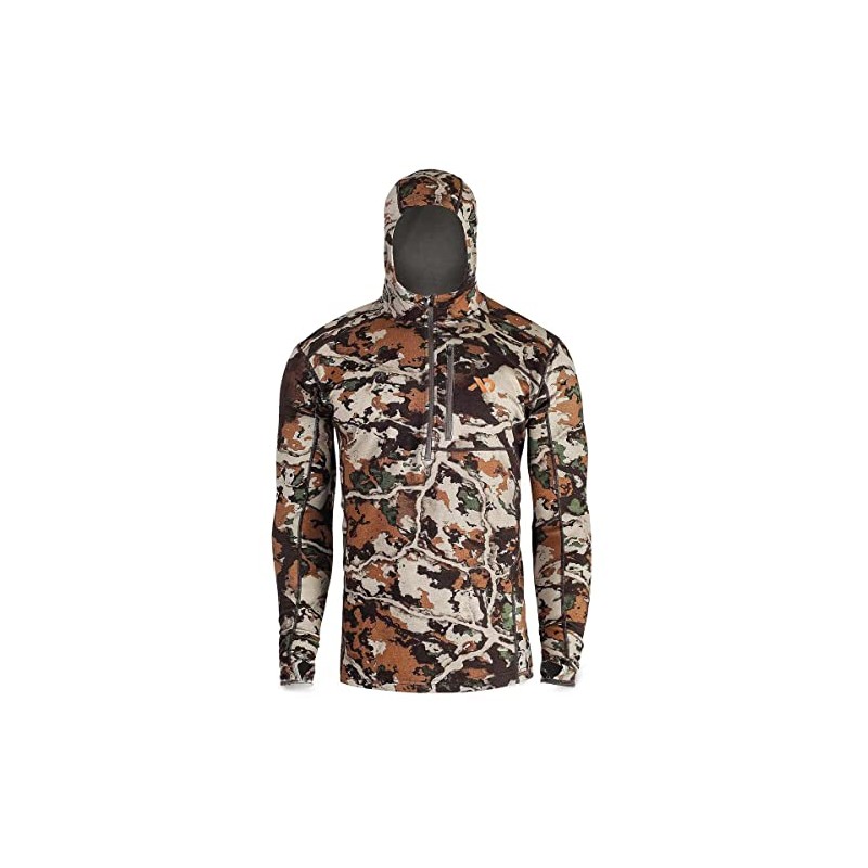 - Ergonomic, quarter zip hood for excellent temperature regulation and concealment. Easily lays flat when not in use and stays out from underneath your pack straps or harness
