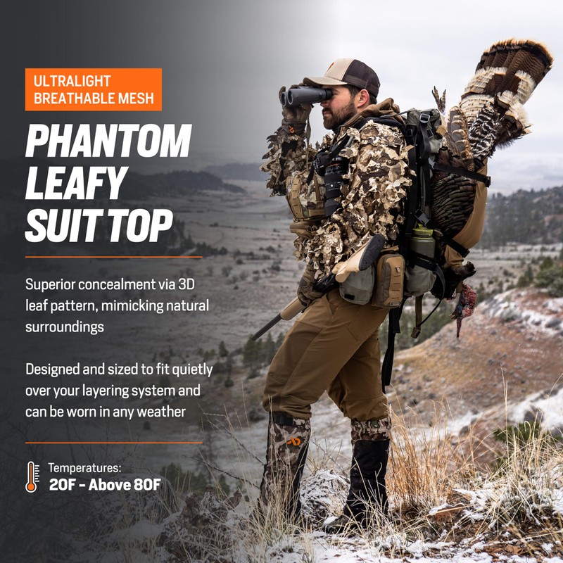 - Designed and built for those of us who want to simply disappear when we get close to our quarry, the Phantom 3D Leafy Jacket is a leafy concealment piece in Fusion, Cipher, and Specter that allows the user the very best in 3D camouflage. With features like extra burly YKK zippers and printed mesh, this is the one leafy top that is built to last. The Phantom is designed and sized to fit over whatever you're wearing in the field and can be worn in any weather over your layering system.