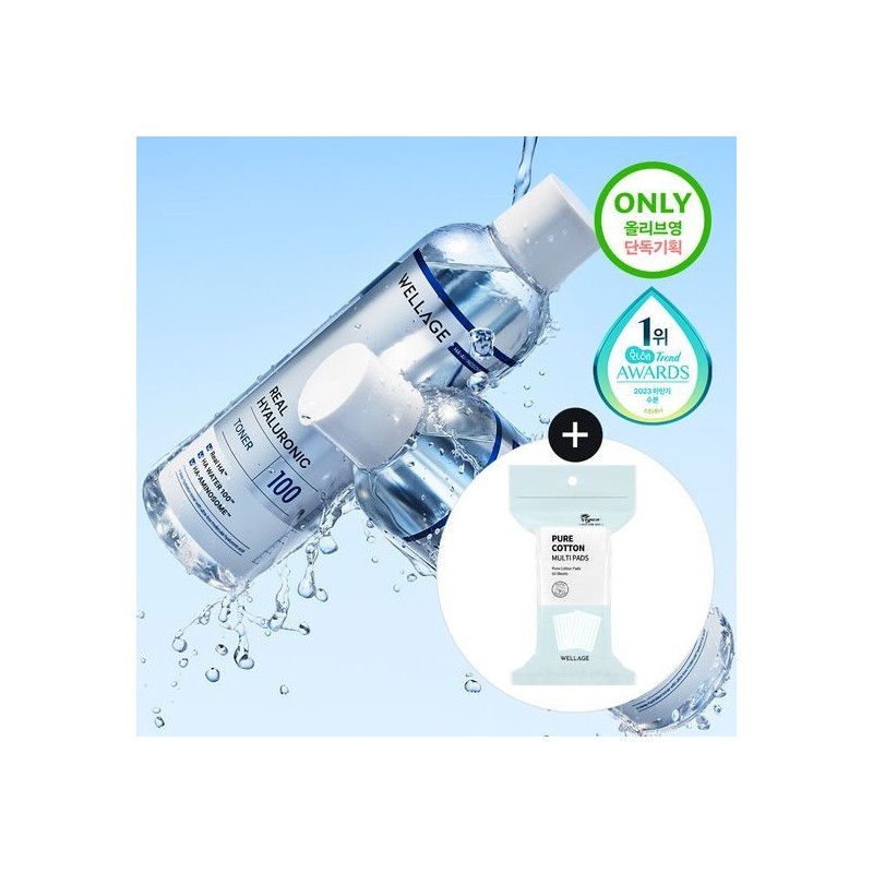 [첫수분토너] 웰라쥬 리얼 히알루로닉 100 토너 300ml 기획 (+화장솜 60매)