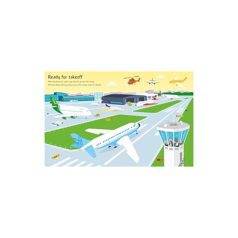 Children can create their own busy airport scenes showing people and planes arriving at the airport, getting ready to fly, taking off and up in the air in this colorful sticker book. With over 100 stickers of planes, cars and buses, as well as passengers, pilots and cabin crew to add to each colorful scene. With lots to look at and talk about, this book will prepare children for what to expect at an airport and keep them entertained whilst they are there.