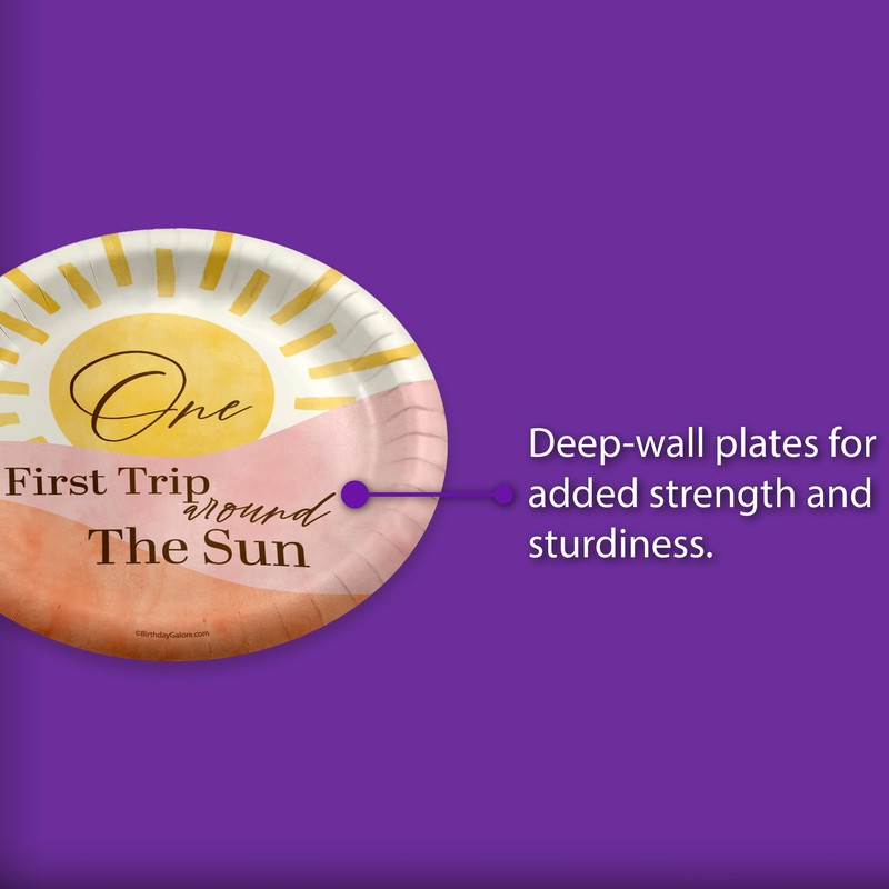 First Trip Around the Sun 1st Birthday Large 9" Paper Plates in Bulk 32 Piece