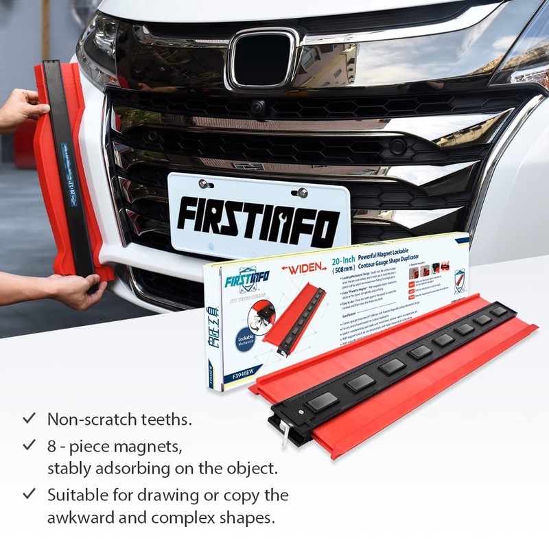 - 【With 8 " Powerful Magnets】FIRSTINFO’s contour gauge shape duplicator comes with EXTRA 8 " Powerful Magnets" on the back allows sticking to the iron products firmly and make measuring and cutting much easier and will not scratch the original finish.