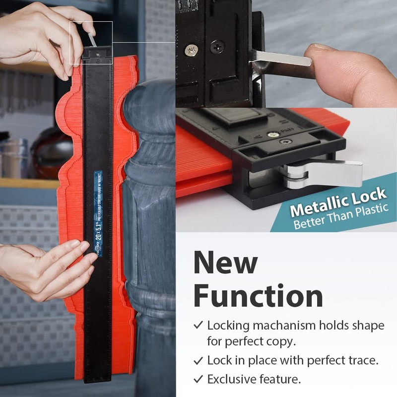 FIRSTINFO Metal-LOCK-Powerful-Magnet -Attached 20 inch (508mm) Lockable & Twin Scale Widen Profile Contour Shape Duplicator Gauge Convenient for Magnetic Attraction