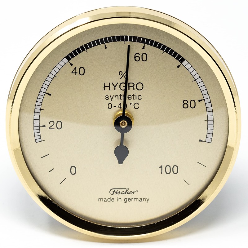 Fischer 150MS - Synthetic Hygrometer - 68 mm Humidity Meter with Brass-Coloured Plastic Housing Made in Germany