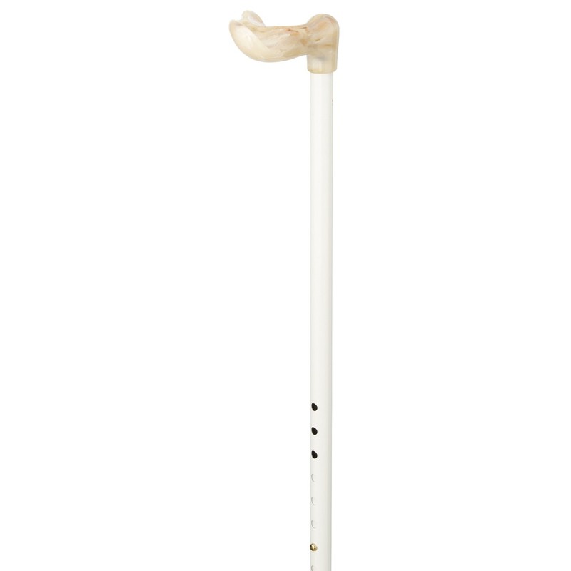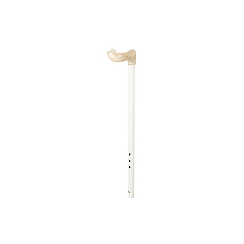 - Aluminium walking stick with anatomically shaped, marbled Fischer acetate handle. Height adjustable shot with gloss finish. With rubber buffer, available for right- and left-handed users.