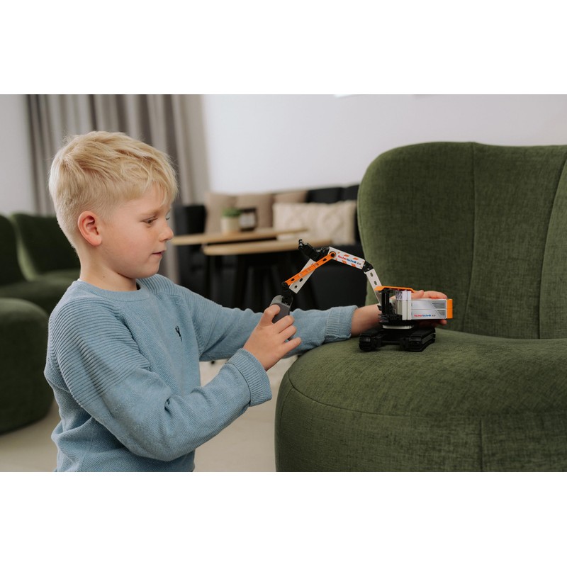 - The children's building kit promotes technical understanding and motor skills while children assemble and operate the excavator independently.