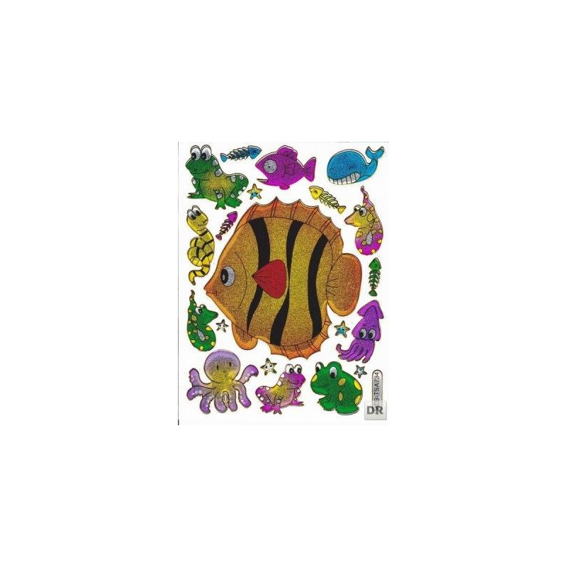 Fish Fish Animals Colourful Sticker 1 Sheet 135 mm x 100 mm Stickers Crafts Children 21 Pieces Party Metallic Look
