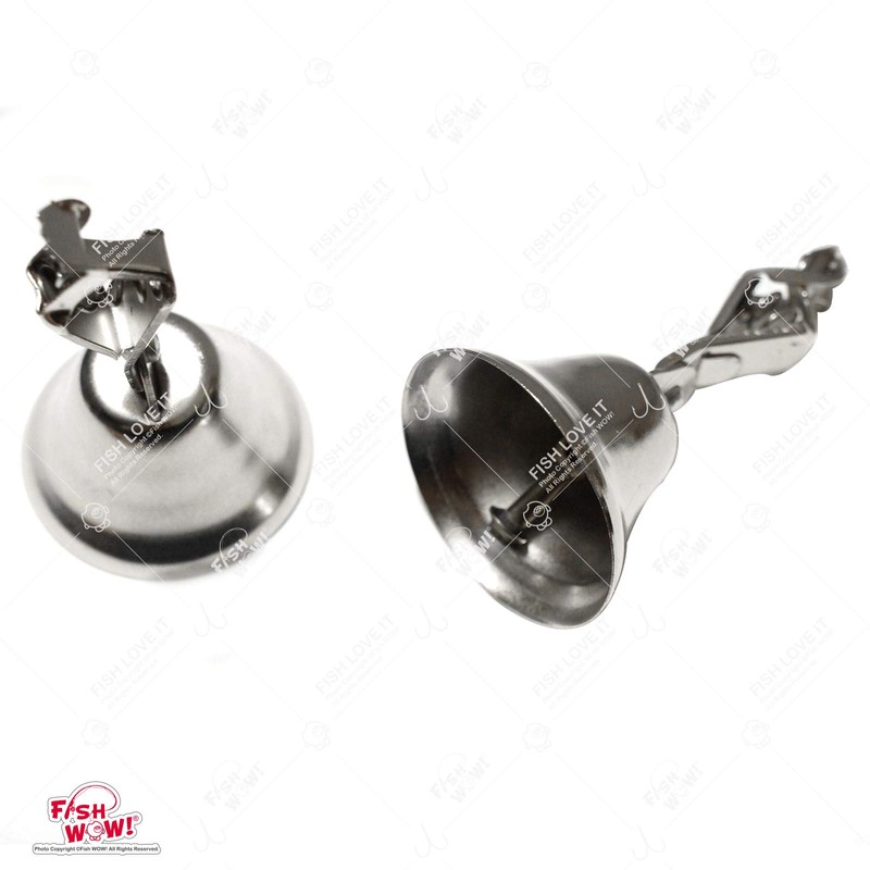 - Clamp-on fishing bell. Spring-loaded clip. Rings loudly when fish pick up the bait.