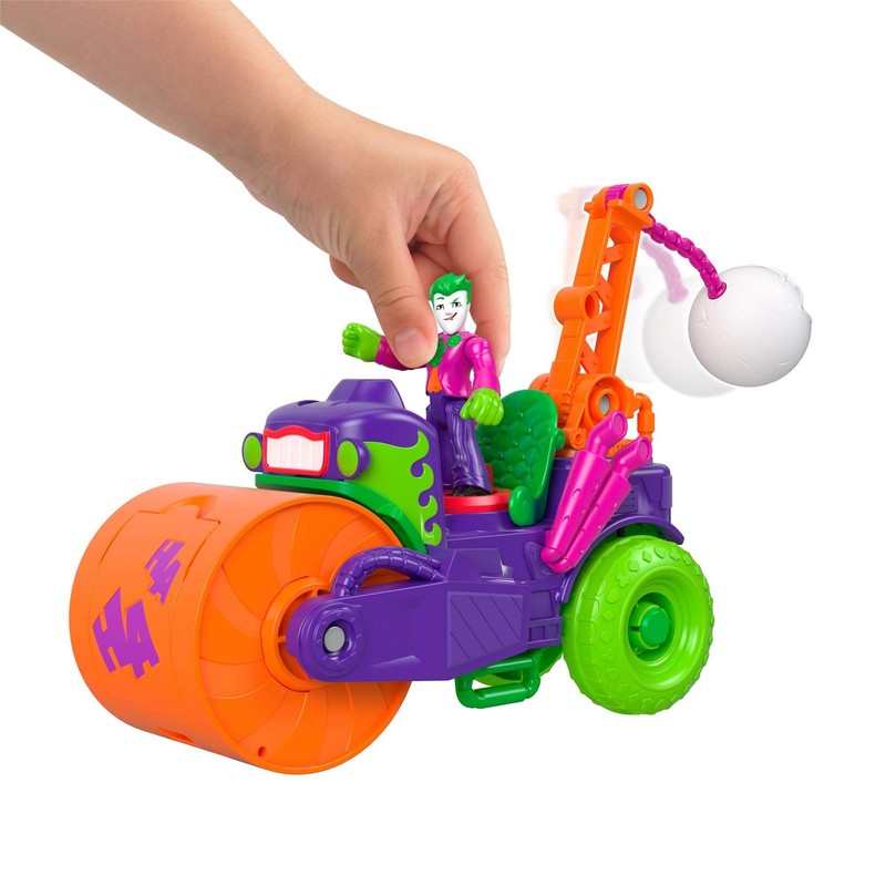 - Kids can create villainous adventures with The Joker and his Steamroller vehicle!