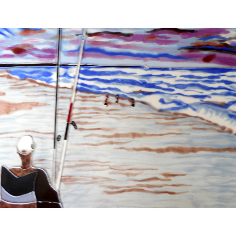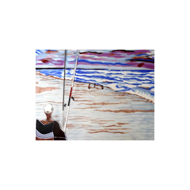 Fisherman hand painted ceramic art tile 11 x 14 inches with felt back and hook