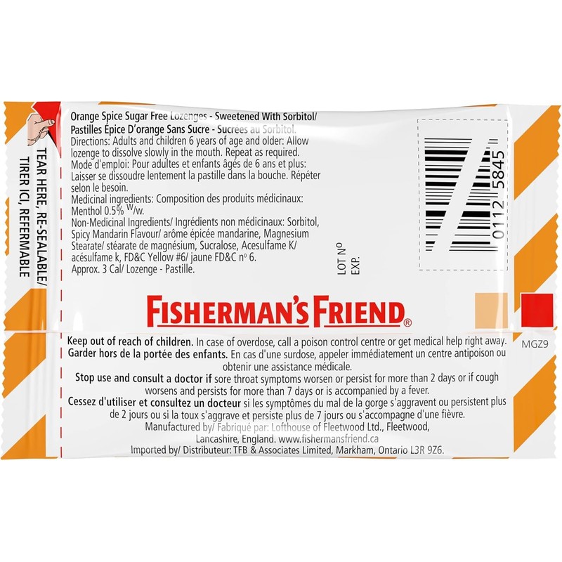 - 𝗢𝗥𝗔𝗡𝗚𝗘 𝗦𝗣𝗜𝗖𝗘 𝗦𝗨𝗚𝗔𝗥 𝗙𝗥𝗘𝗘 – Fisherman’s Friend Orange Spice offers the perfect solution for those moments when your throat feels scratchy and sore, whether it’s right before a big test, an important presentation, or any other time. Take a deep breath and let these lozenges kickstart your everyday life