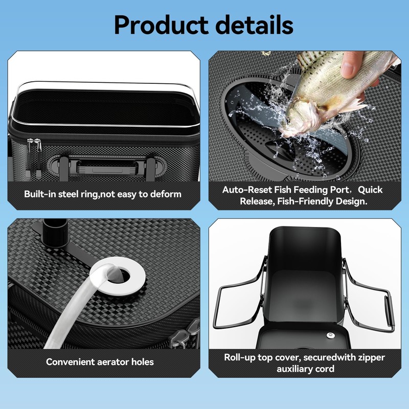 - 【Zippered Breathable Skylight + Aerator Ready】Top zippered breathable window keeps bait/fish alive by airing out, while the zipper locks escapes. A pre-cut aerator hole works with side pockets (pump not included), ensuring oxygen flow for longer survival—perfect for live bait storage.
