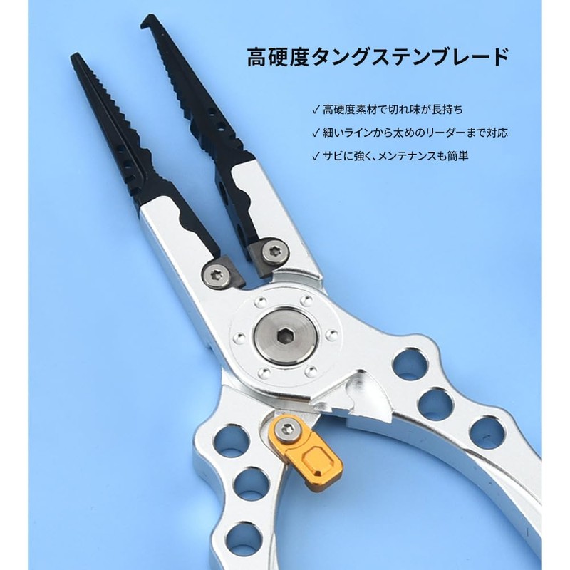 Furthermore, it is equipped with a high hardness tungsten blade, so it can cut thick lines such as PE lines and fluorocarbon. The rust-resistant material makes it safe to use in freshwater and saltwater environments.