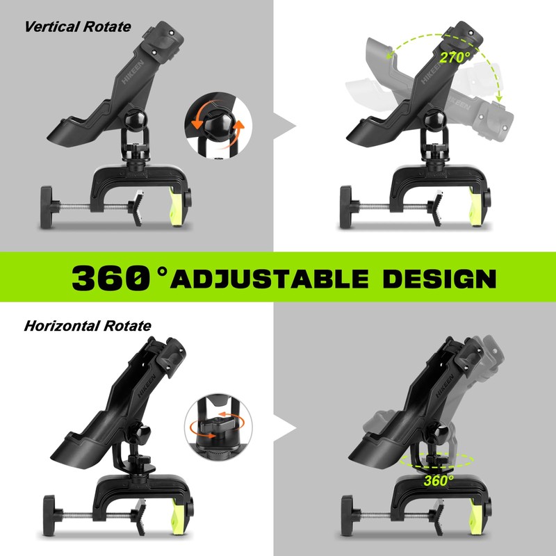 - 【Double V-shaped Stability Design】We have researched other brands on the market and made some improvements. Hikeen rod holders for fishing boat features advanced double V-shaped threaded clamp and non-slip silicone design for stability. Its four contact points provide a larger contact area and ensures a firm grip on the fishing rod . The silicone pad ensures that there will be no scratches on the boat, and you can focus on fight the fish wholeheartedly.