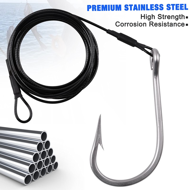- 【High Strengrth】Shark fishing rig made by 49 Strands Stainless Steel Cable Leader Wire with Nylon Coating,Leader Test:400 lb,length 9.8ft.More durable. Strong corrosion resistance,has Longer Anti-rust Time In the Sea