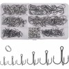Fishing Treble Hooks Kit, 180pcs Sharp Round Bend Treble Hooks High Carbon Steel Fishing Hooks Strong Barbed Fish Hooks with Split Rings for Fishing Lures Baits Freshwater Saltwater