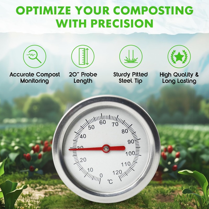 - ✅Accurate Compost Monitoring: With our compost temperature probe, you will always know exactly when your composting is done and accurately decide on when you should turn it over to increase composting activity. Warm : 26C-37C,Ideal : 38C-54C, Hot : 55C-71C