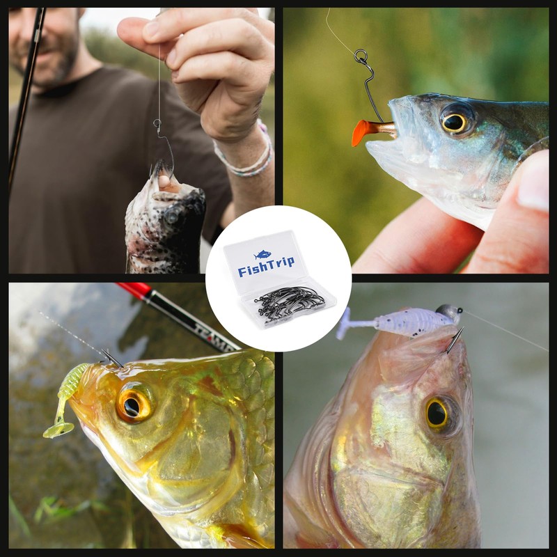 - 【Strength&Durability】FishTrip EWG Bass Fishing Hooks are made from premium high carbon steel for superior strength and durability. These hooks feature a sharp, off-center shank and closed-eye design ideal for a variety of rigs, and are corrosion-resistant to stay sharp and bend-resistant even after a day of fishing