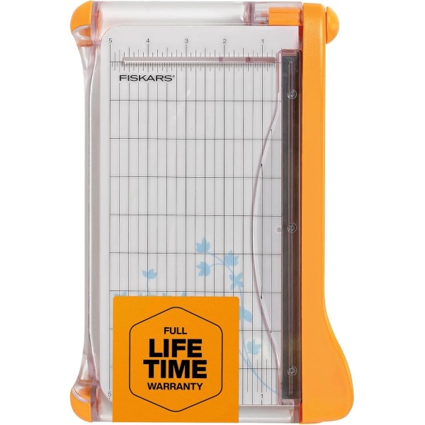 Achieve precision cuts every time with this Fiskars 9" Craft Bypass Paper Trimmer. Ideal for crafters and scrapbookers, it features a self-sharpening blade that cleanly slices through up to 5 sheets of paper. The extended base fits 8.5" wide paper, while the permanent grid and scale mat ensure accurate alignment. A built-in paper clamp with smudge guard secures your materials and prevents fingerprints. Its compact, lightweight design and non-slip rubber feet make it perfect for portable crafting sessions.