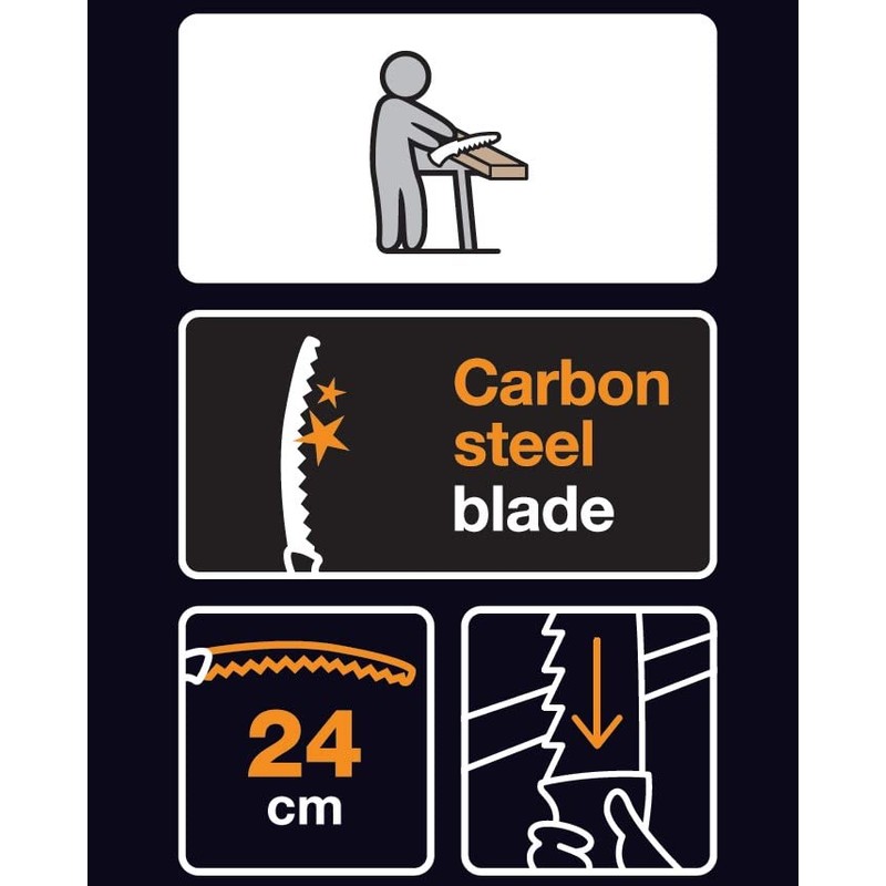 • Clean and precise cutting results thanks to special, coarse toothing, effortless cutting thanks to hollow ground saw blade, sawing in the direction of pull