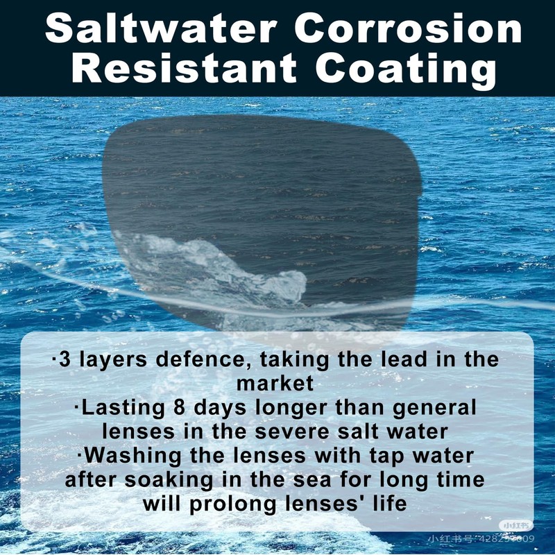 - Anti4s Lenses: The outer layers of lens are specially coated, perfectly preventing from sea corrosion, oil stains, adhesive dust and slightly scratches, which extends the lenses' life-span and makes them easy to clean. Anti4s: anti-saltwater, anti-oil, anti-dust and anti-scratch.