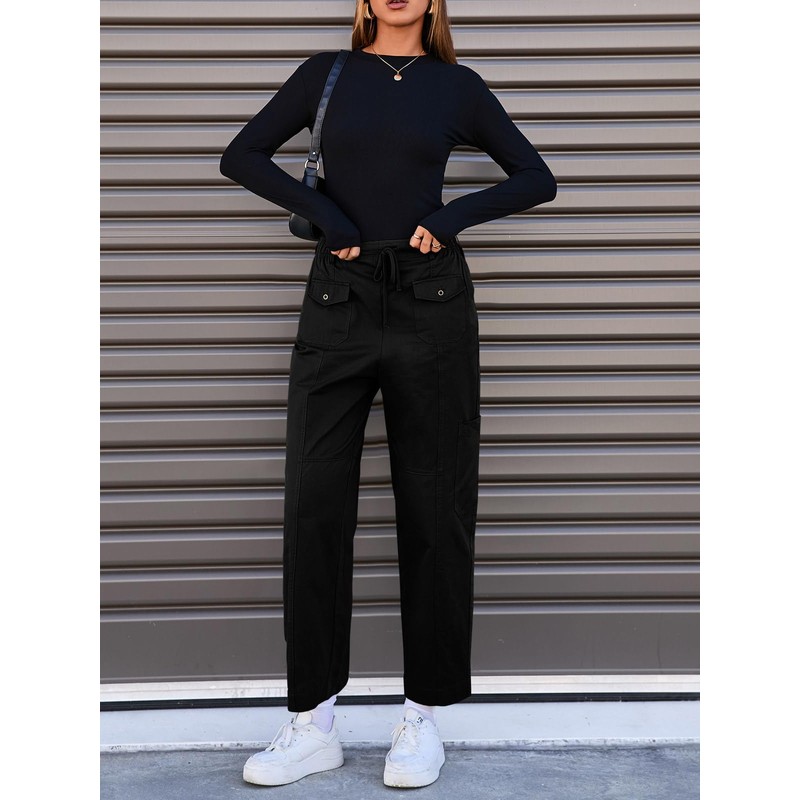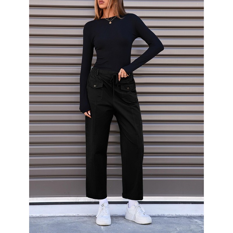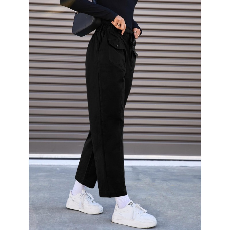 - Pants Chic Design: Featuring a trendy low-rise fit and an adjustable drawstring waist. These pants boast a wide-leg silhouette for a relaxed, modern look. Multiple functional pockets provide ample storage, blending practicality with a casual, utilitarian style