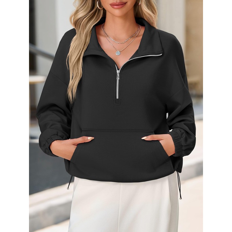 - Design Details: This zipper sweatshirt combines a stand collar with a half-zip design that provides extra warmth and is easy to put on and take off, while adding style and practicality. Stand collar can also be put down as collared, multiple ways to wear it
