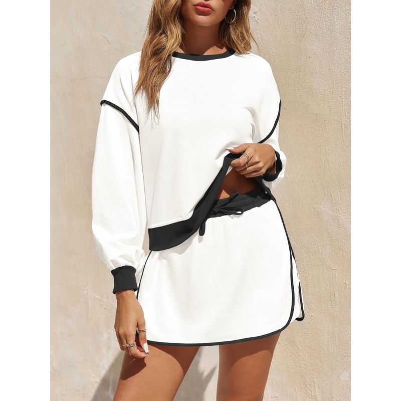 - Thoughtful Design: This womens 7 piece set features a trendy color block drop shoulder sweatshirt and comfortable drawstring short with built-in shorts.The sweatshirt's collar and sleeve hems showcase a unique design that harmonizes with the edge of the shorts, creating a cohesive and stylish outfit for both casual outings and home wear.
