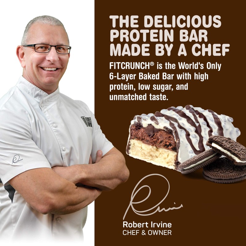 FITCRUNCH Full Size Protein Bars, Designed by Robert Irvine, 6-Layer Baked Bar, 6g of Sugar, Gluten Free & Soft Cake Core (Milk and Cookies)