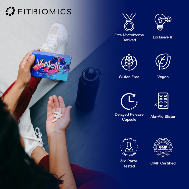 FITBIOMICS FITBIOMICS V?Nella Lactic Acid Metabolizing Probiotic Supplement and Nella Performance Probiotic for Microbiome Balance, Digestive Health