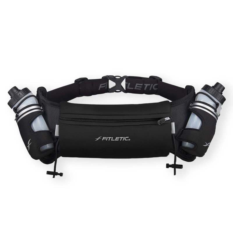 Fitletic - Hydra 16 Hydration Belt, Running Belt with Water Bottle Holder, Water Bottle, Outer/Inner Pocket, Gel Holder and Race Bib Toggles, Water Running Belt
