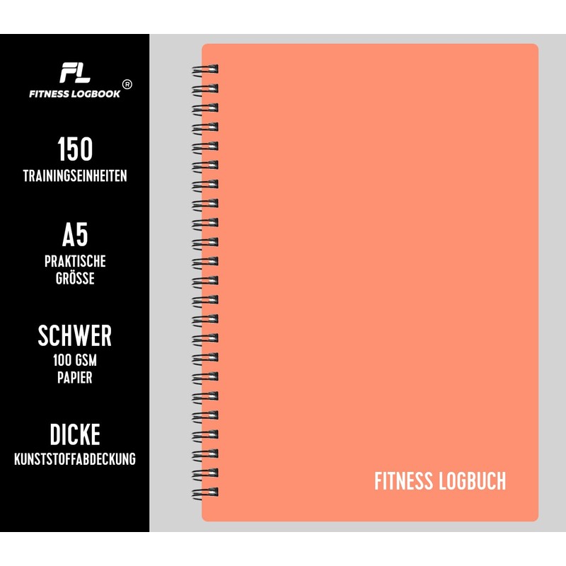 Fitness Log Book Plastic Cover Peach - Undated Workout Diary - A5 Size Thick Paper Strong Binding - Stylish and Minimalist Training Diary