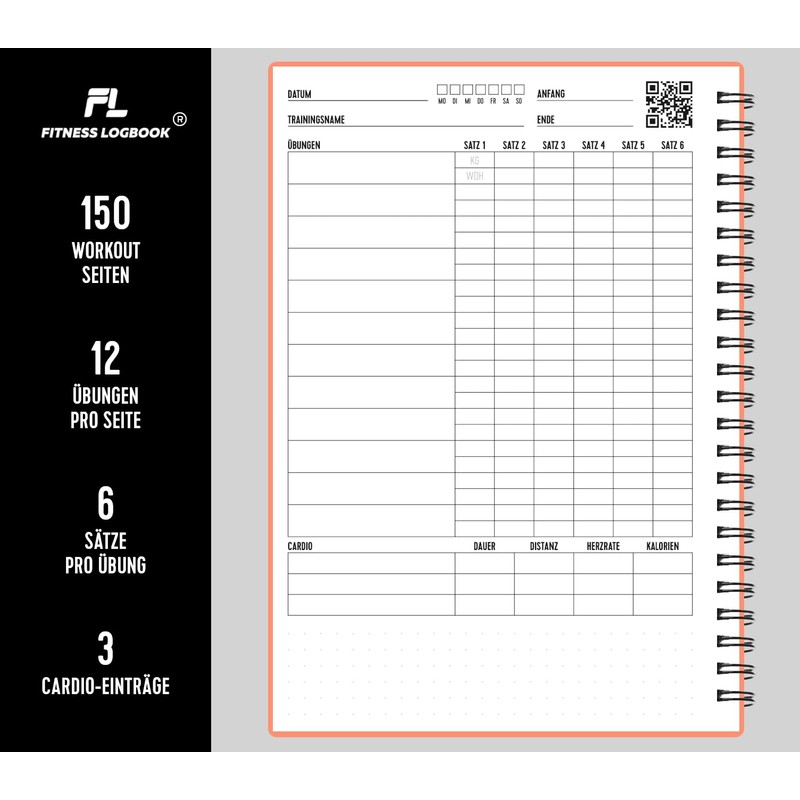 - Well thought-out layout Simple, clean and tried and tested Plenty of space to write down exercises, weights, repetitions, cardio and notes