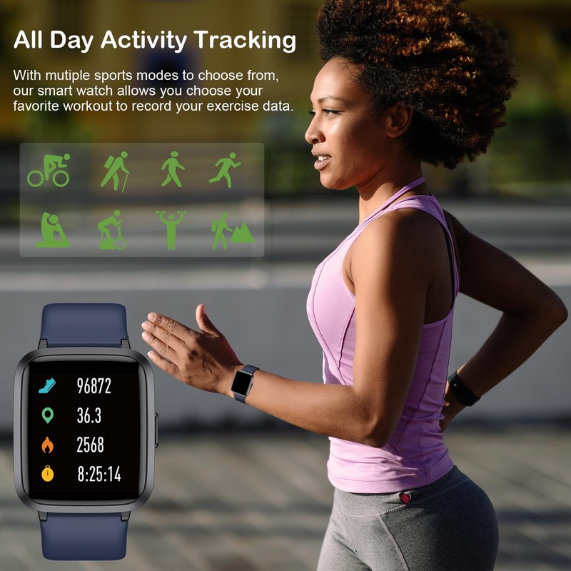 - 【All-Day Accurate Fitness Tracker】The fitness watch has multiple sports modes (walking, running, cycling, hiking, mountain climbing, dynamic cycling, fitness, treadmill, yoga, etc.) to meet various exercise needs. It accurately records all-day activities, monitoring your daily steps, calories burned, distance walked, active minutes, and more.