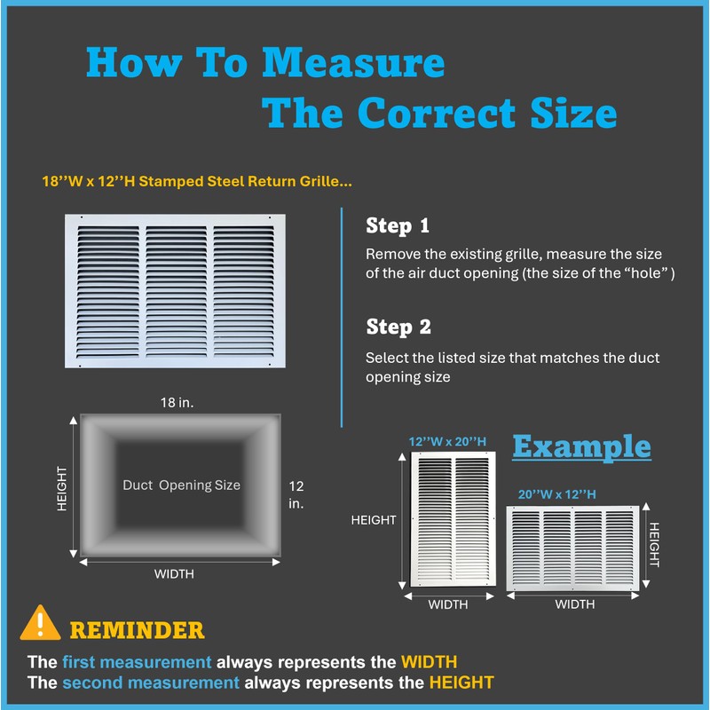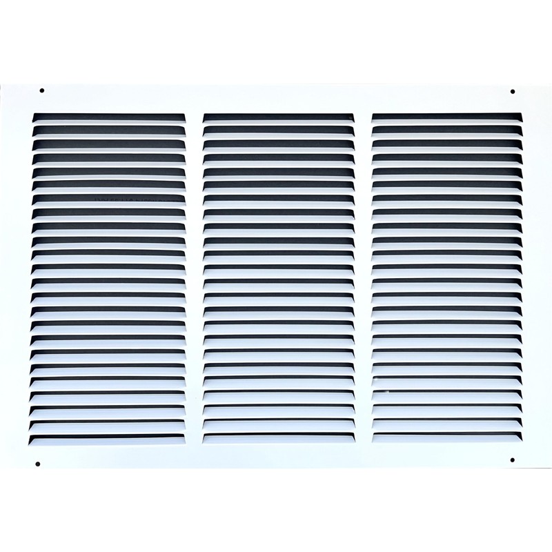 Fits 18x12 Duct Opening Stamped Steel Return Air Grille Vent Cover Grille for Sidewall and Ceiling in White Surface Dimensions: 19.75"W X 13.75"H (18" W x 12" H Duct Opening)