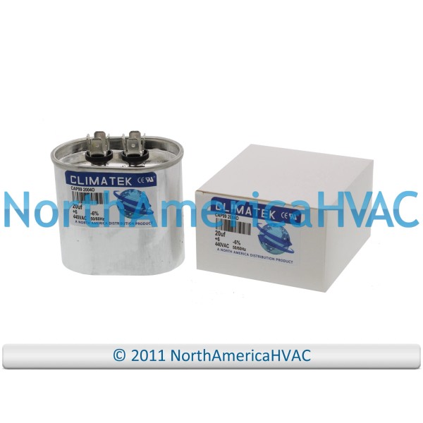 This is a BRAND NEW ClimaTek Replacement for Carrier Bryant Payne 20 uf MFD Oval 370 / 440 Volt Capacitor. It replaces the part numbers listed below.