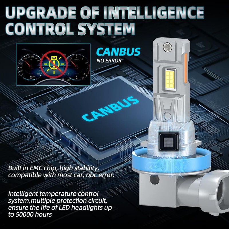 - 【8X Brighter Than Halogen | 6000K Cool White 20,000LM】 "Experience highway-ready brightness with 20000LM output (8X brighter than stock halogen), delivering crisp 6000K cool white light that mimics daylight for safer night driving."