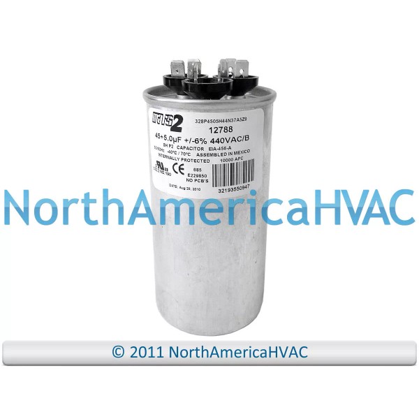 This is a BRAND NEW Mars2 Dual Run Capacitor. The capacitor is rated at 45+5 MFD at 440 volts. The Mars2 # is 12788 (Replaces Mars # 12288). If you need a size that we have not listed here please contact us and we can get you a price and create another listing for that size. Thanks you for looking and good luck!