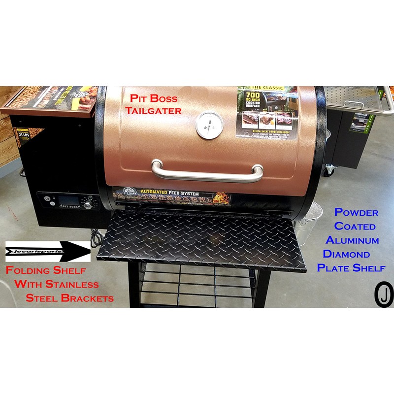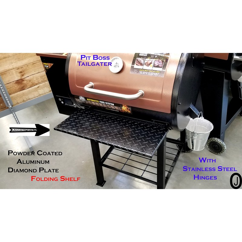 - Fits Pit Boss Tailgater Pellet Grill Powder Coated Diamond Plate Folding Shelf