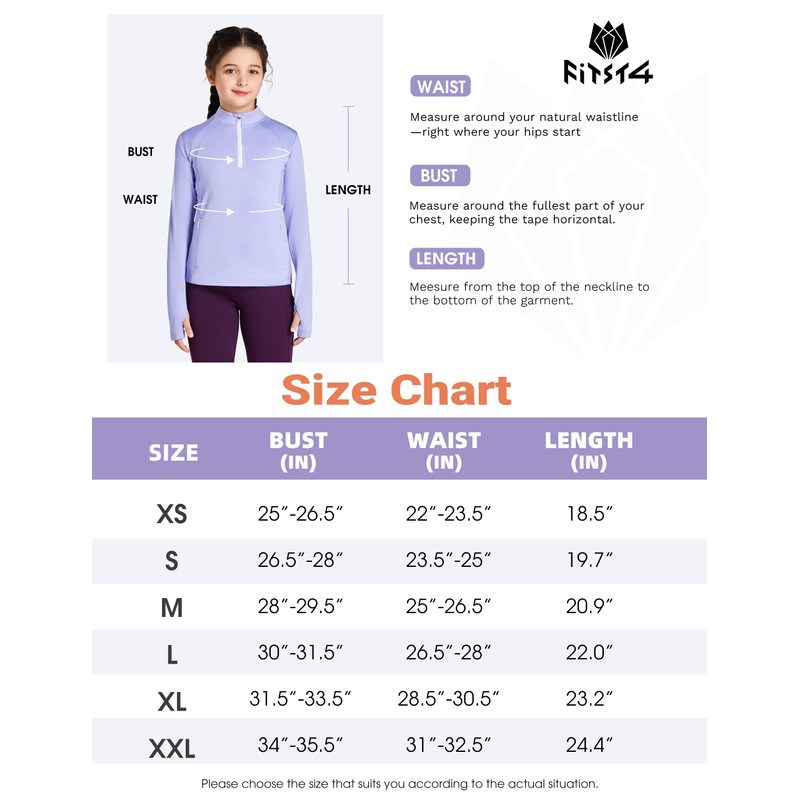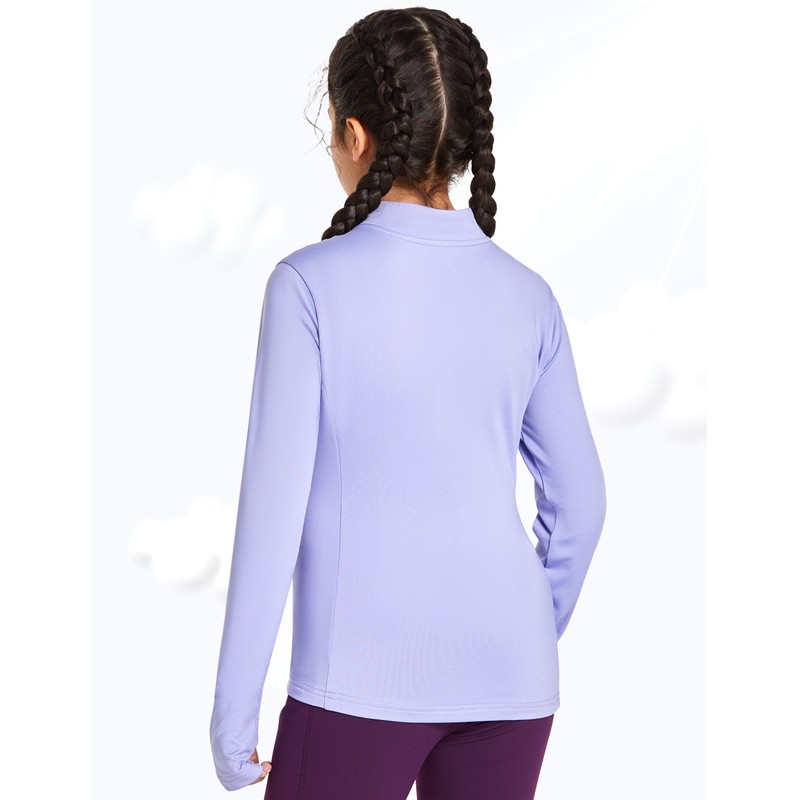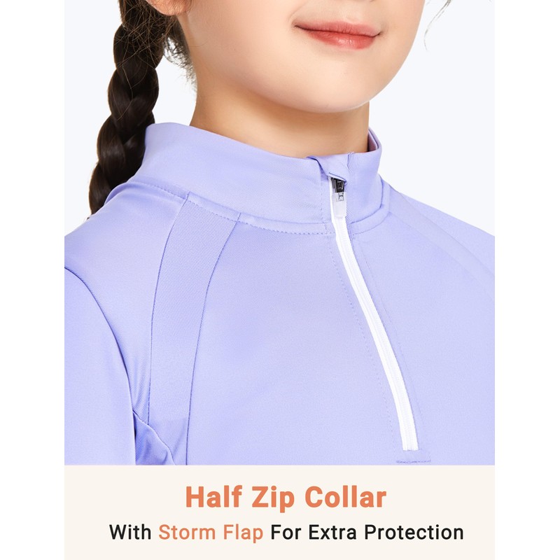 FitsT4 Sports Girls Horse Riding Shirts Thumbhole Fleece Lined Long Sleeve Shirts Kids Equestrain Half Zip Jacket Purple S