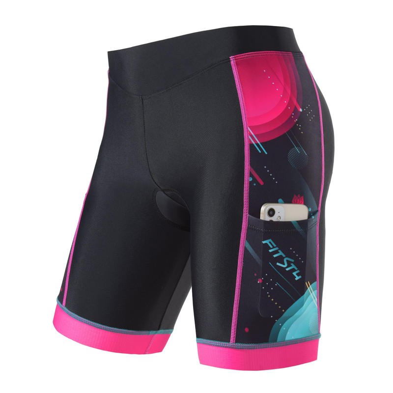 FitsT4 Sports Kids Cycling Bike Shorts Boys Girls Printed Biking Shorts Padded Youth Triathlon Shorts with Pockets Pink Size M