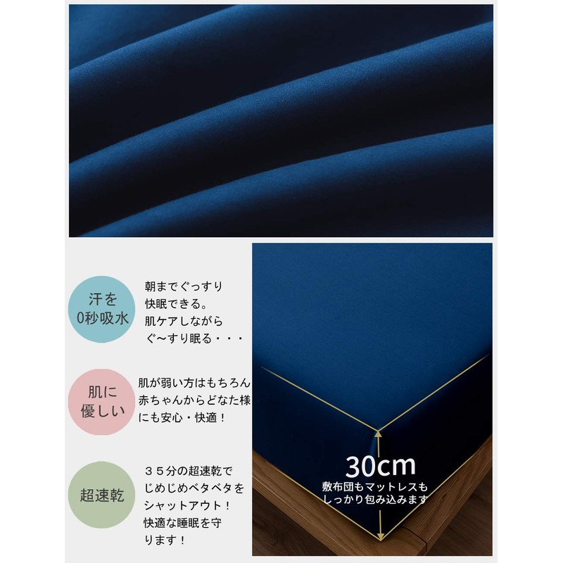 Fitted Sheet, Absorbent, Quick Drying, Sheets, Bed Cover, Mattress Cover, Antibacterial and Odor Resistant, Single, 39.4 x 78.7 Inches (100 x 200 cm), Navy, Suitable for Mattresses 2.0 to 11.8 Inches